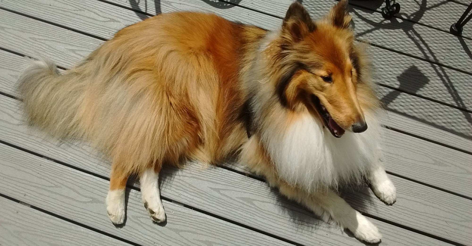 • Double-coated dogs have protection from the direct sun and intense direct heat because of the structure of their coats. Annie, our rough collie, will sometimes sunbathe on our hot, hot deck. Often we need to chase her inside after a few minutes so she doesn’t overheat.
