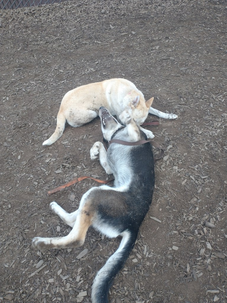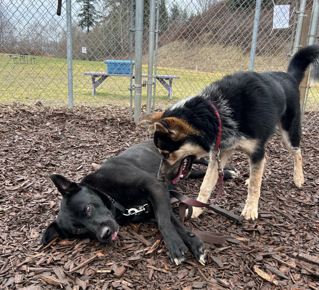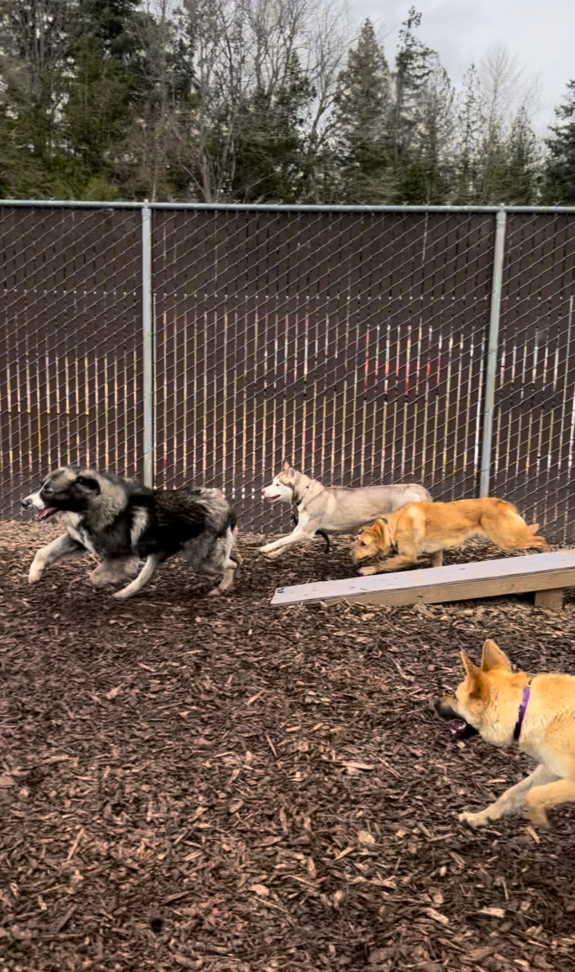 Most days, playtime flows beautifully. The dogs we bring into the yard together click, and their antics have us laughing. We watch friendships unfold, observe how one dog entering or leaving the group completely alters the dynamic, or see a fearful dog be gently integrated into the group by polite, socially adept helper dogs.